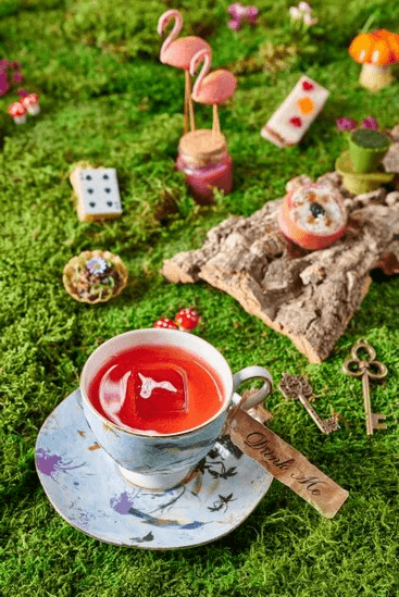 In collaboration with the British Library and ARTiSTORY, we developed 'Adventures in Storyland: The Nursery Alice,' a theatrical afternoon tea experience that transforms Lewis Carroll's 'The Nursery Alice' into an immersive culinary adventure. Each element was carefully crafted to represent key characters and scenes from the story: Playing card-inspired canapés featuring the Queen of Hearts, forest mushroom selections evoking Alice's journey through the mystical woods, and clock-shaped treats reminiscent of the White Rabbit's perpetual time anxiety. The experience includes John Tenniel's celebrated Victorian illustrations adorning the walls, themed cocktails and mocktails, and interactive photo opportunities that allow guests to become part of the Wonderland story.