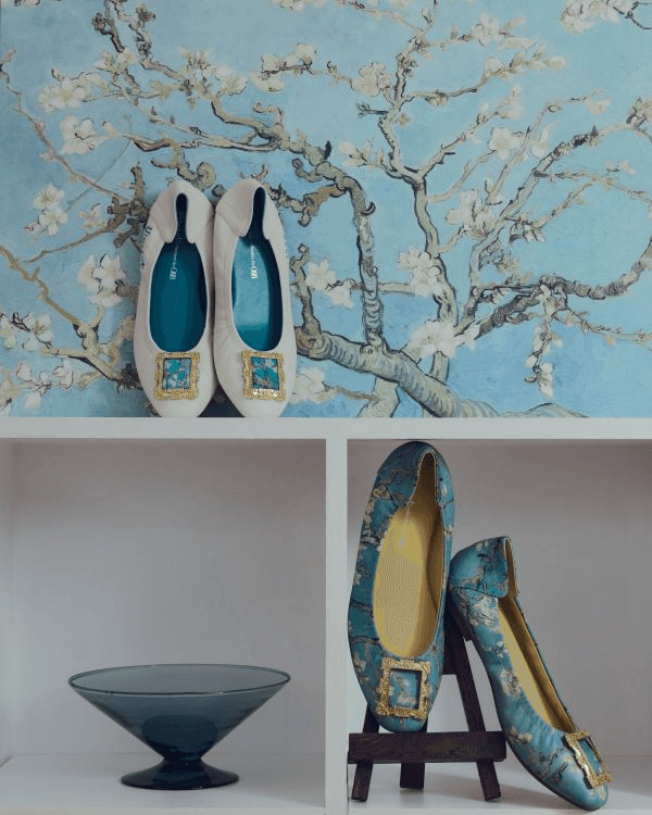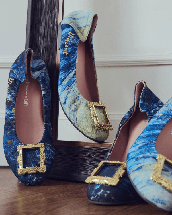 O&B faced the challenge of translating Van Gogh's dynamic brushstrokes and vibrant color palettes onto the refined canvas of ballet flats while maintaining the artistic integrity of these beloved masterpieces. The goal was to create elegant footwear that honors Van Gogh's emotional intensity and artistic genius while appealing to women seeking sophisticated, art-inspired fashion.
