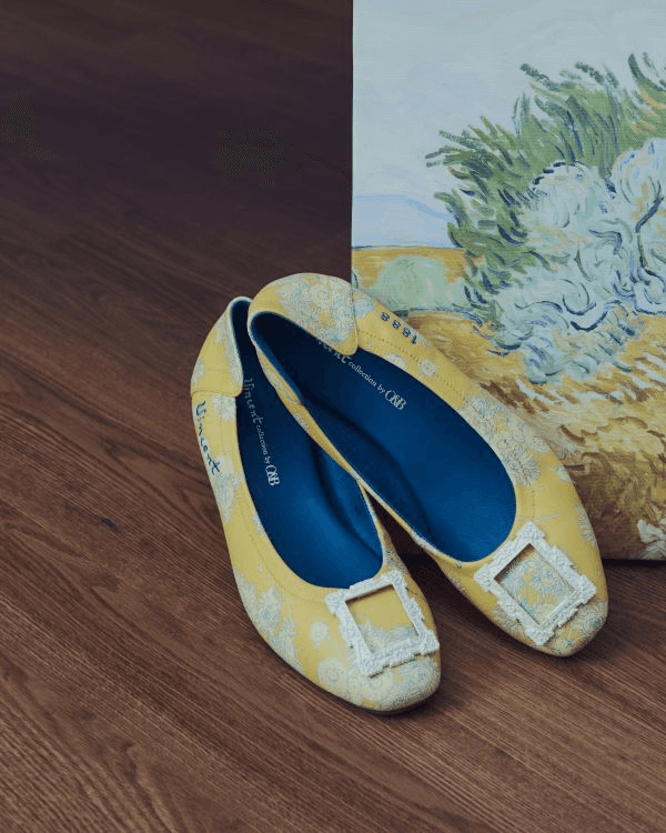 O&B partnered with ARTiSTORY to develop an exquisite collection of ballet flats that beautifully captures Van Gogh's most iconic works. The collection features shoes adorned with Starry Night's swirling cosmos, Sunflowers' golden radiance, and Irises' delicate beauty. Each pair is meticulously crafted to preserve the emotional depth and visual impact of Van Gogh's paintings while providing the comfort and elegance expected from premium ballet flats.